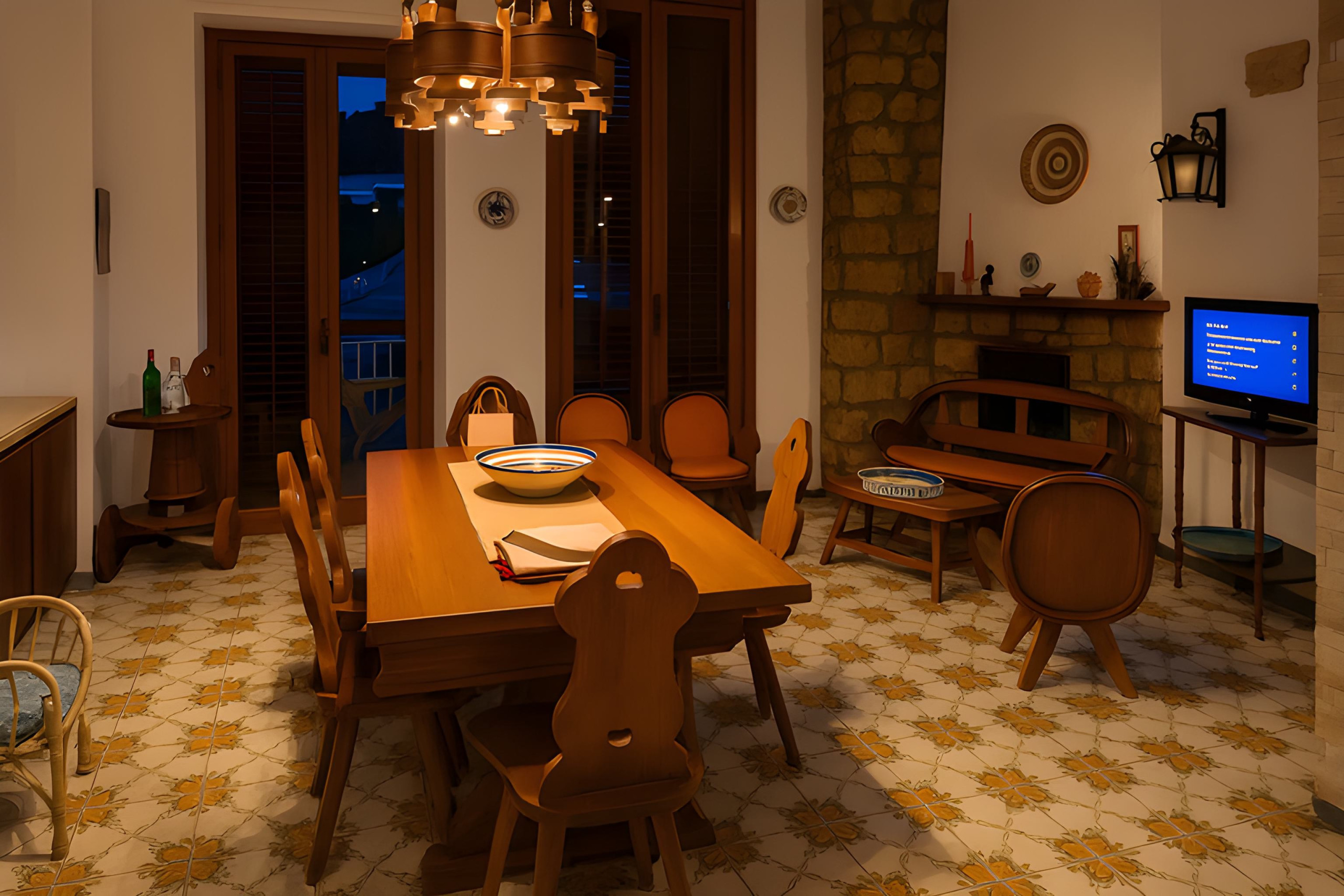 L'interno dell'abitazione è dotato di ogni comfort: aria condizionata nel soggiorno, riscaldamento a pompa di calore e connessione WiFi. La cucina completamente attrezzata include elettrodomestici essenziali come frigorifero, congelatore, lavatrice, forno, microonde e macchina da caffè. Inoltre, troverete una TV con canali in italiano e inglese, camino per serate accoglienti e ferro da stiro.