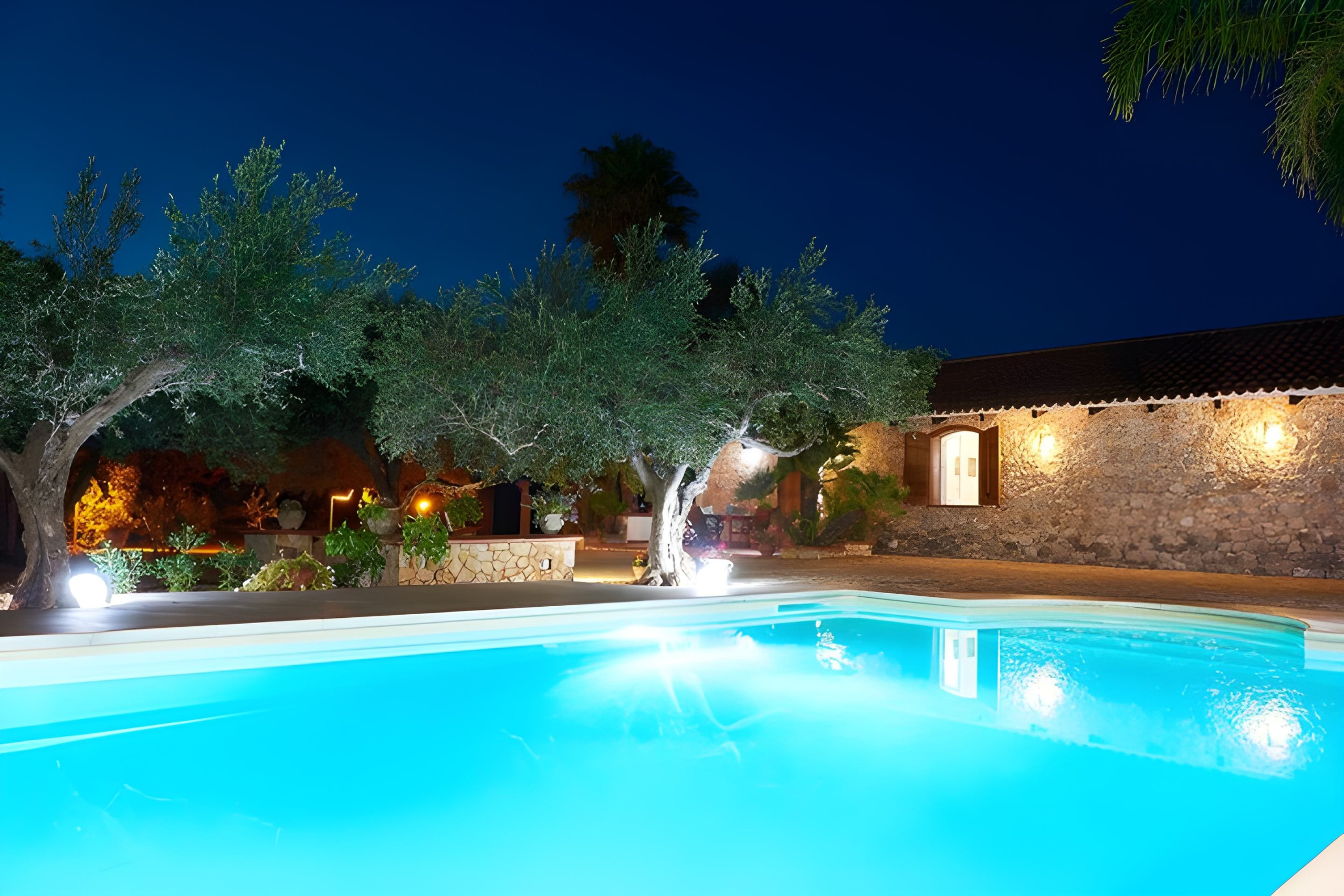 Surrounded by a lush Mediterranean garden with palm trees and centuries-old olive trees, the villa offers a splendid private pool with a equipped solarium area, perfect for relaxing under the warm Sicilian sun or for pleasant evenings outdoors under the starry sky.